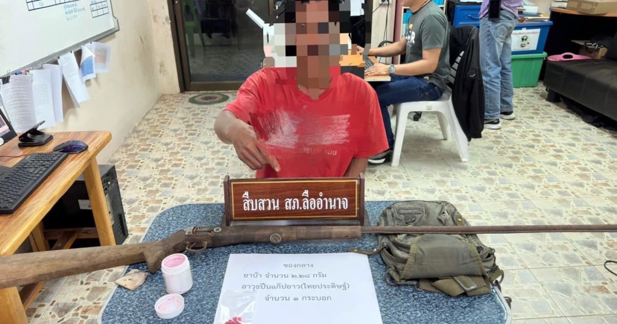 วันที่ 15 ตุลาคม 2567 ภายใต้อำนวยการของ พ.ต.อ.เทวราช เอื้อวงษ์ประเสริฐ ผกก.สภ.ลืออำนาจ ให้ พ.ต.ต.ประหยัด พิมพ์โพธิ์ สว.สส.สภ.ลืออำนาจ พร้อมด้วยชุดสืบสวน ร่วมกันจับกุมโดยกล่าวหาว่า “มีไว้ในครอบครองซึ่งยาเสพติดให้โทษในประเภท 1 (เมทแอมเฟตามีนไฮโดรคลอไรด์) โดยไม่ได้รับอนุญาต, เสพยาเสพติดให้โทษในประเภท 1 (เมทแอมเฟตามีน) โดยฝ่าฝืนต่อกฎหมายแล้วมาขับขี่รถจักรยานยนต์ไปในทางสาธารณะ และมีอาวุธปืนไว้ในความครอบครองโดยไม่ได้รับอนุญาตจากนายทะเบียนท้องที่”
