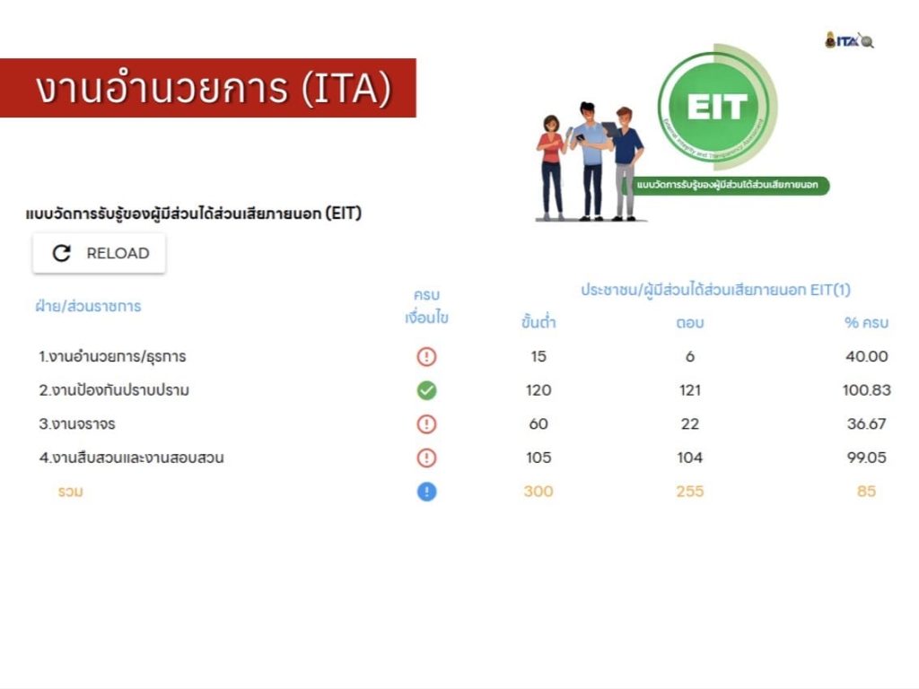 – EIT ยังไม่ครบขั้นต่ำและไม่ครบเงื่อนไข โดยตอบมาแล้ว 255 คน เร่งรัดให้ดำเนินการตามเวลาที่กำหนด
