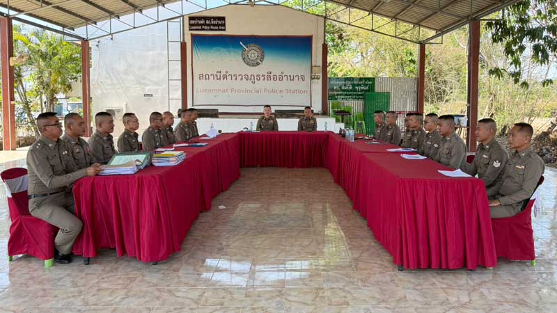 วันที่ 19 กุมภาพันธ์ 2569 เวลา 10.30 น. พ.ต.อ.สุทธกาญจน์ ฟักทอง รอง ผบก.ภ.จว.อำนาจเจริญ, พ.ต.อ.ธนภณ เตชะตานลท์ ผกก.ฝอ.ภ.จว.อำนาจเจริญ และคณะตรวจราชการ ได้มาตรวจราชการประจำปีงบประมาณ พ.ศ. 2569 ที่ สภ.ลืออำนาจ มี พ.ต.อ.เทวราช เอื้อวงษ์ประเสริฐ ผกก.สภ.ลืออำนาจ และข้าราชการตำรวจในสังกัด รอรับการตรวจระเบียบวินัย การแต่งกาย ทรงผม การฝึกยุทธวิธี ตรวจแฟ้ม 5 ด้าน และ กำชับข้าราชการตำรวจทุกนาย