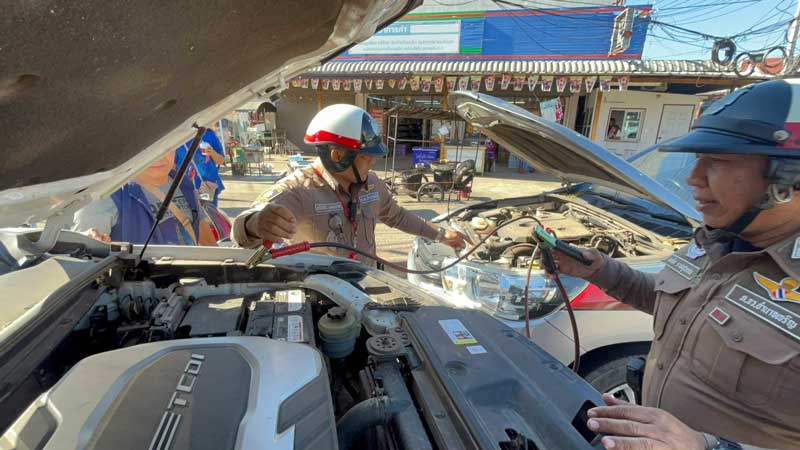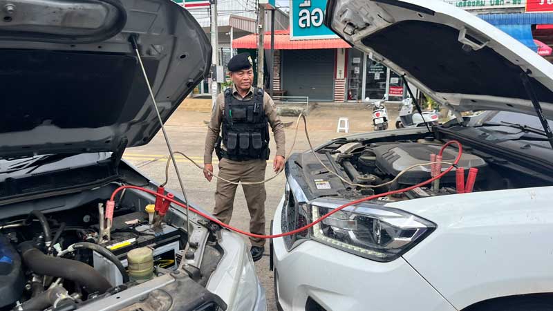 จราจรช่วยเหลือประชาชนรถยนต์สตาร์ทไม่ติด