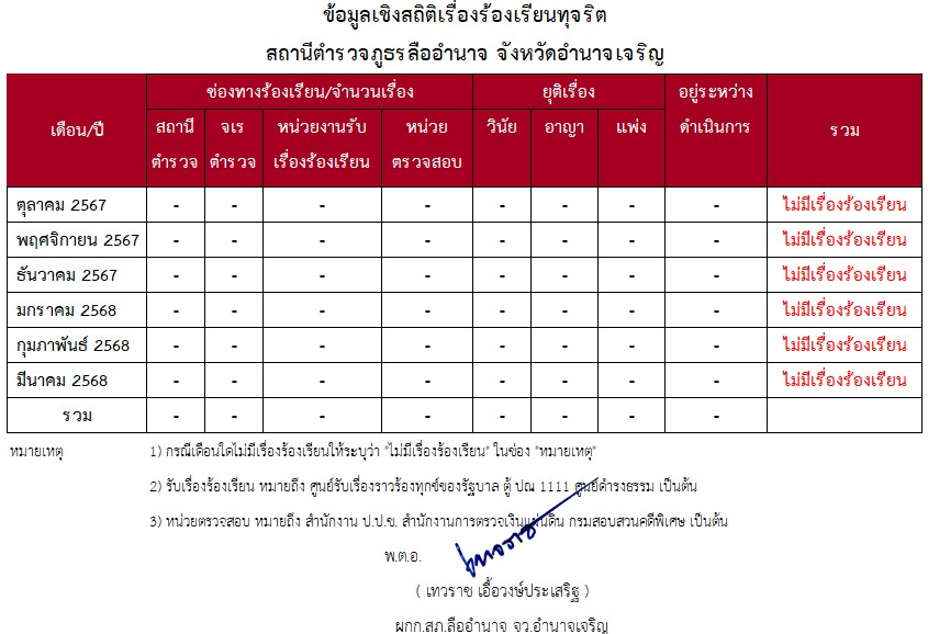 O17 ช่องทางการแจ้งเรื่องร้องเรียนการทุจริตและข้อมูลเชิงสถิติเรื่องร้องเรียนการทุจริต